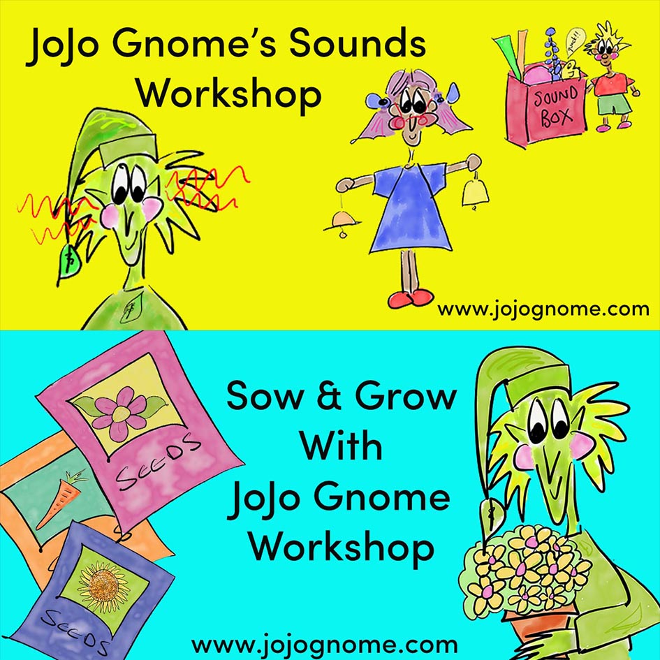 There are currently two workshops on offer JoJo Gnome Loves Sounds and Sowing and Grow with JoJo Gnome. Coming in autumn 2021 will be ‘JoJo Gnome loves Science’ and ‘JoJo Gnome loves numbers’.